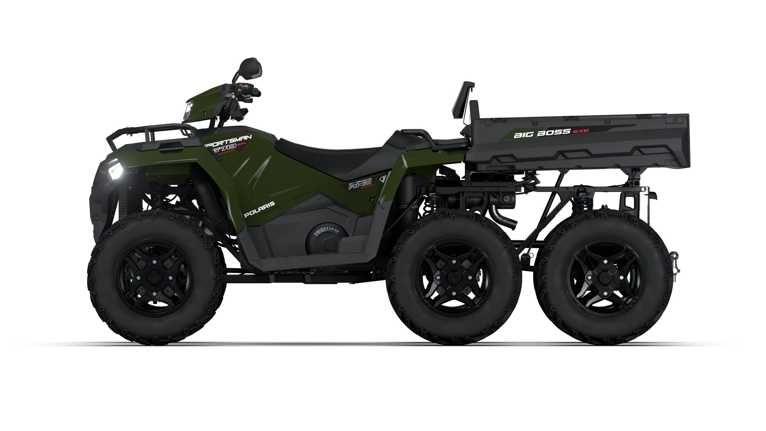 Le Sportsman 6×6 570 est doté de la traction intégrale aux 6 roues pour une motricité optimale, du système de frein moteur EBS allié au contrôle de descente actif, du plus grand réservoir sur le marché – 25,5 L –. et un système de siège passager intégré pour vous attaquer aux travaux les plus rudes à 2.